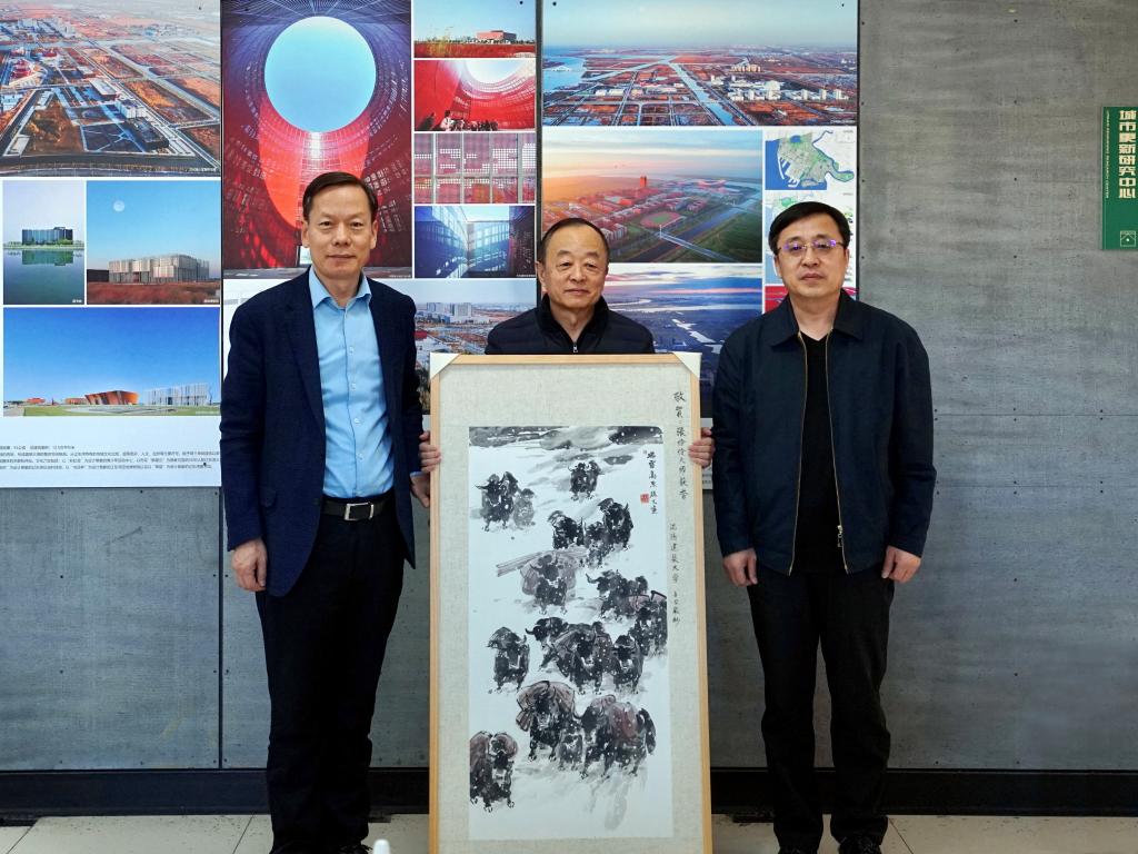 慰问期间,董玉宽、阎卫东代表学校为张伶伶教授赠送了我校徐文教授的画作《瑞雪高原》。建筑与规划学院党政负责人、天作建筑研究院负责人参加慰问。