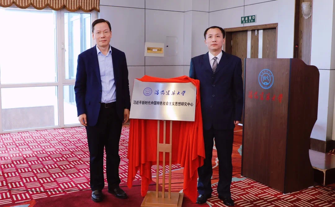董玉宽和研究中心主任顾世春为“沈阳建筑大学习近平新时代中国特色社会主义思想研究中心”揭牌。