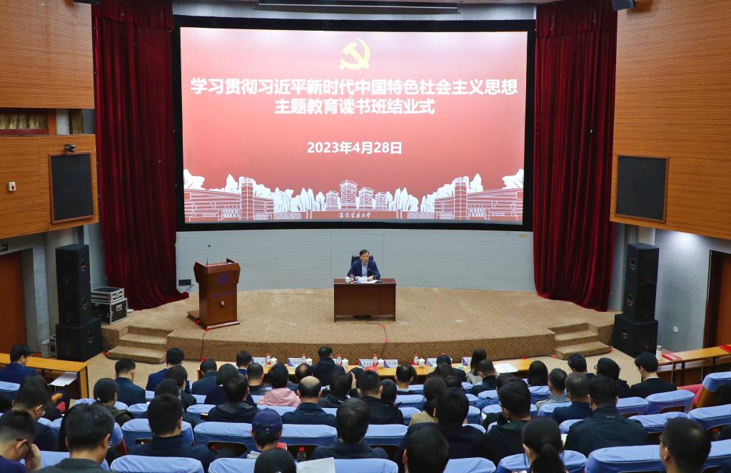 4月28日,学校在新宁科学会堂举行学习贯彻习近平新时代中国特色社会主义思想主题教育读书班结业式。校党委书记董玉宽,副校长李宇鹏,党委常委、副校长冯国会,党委常委、统战部部长曹传明,党委常委、组织部部长潘瑞出席,校院两级党委理论学习中心组成员、全校教工党支部书记参加了活动。省委主题教育第二十巡回指导组副组长、沈阳化工大学党委副书记周志强,巡回指导组成员辽宁中医药大学张澎应邀出席活动。