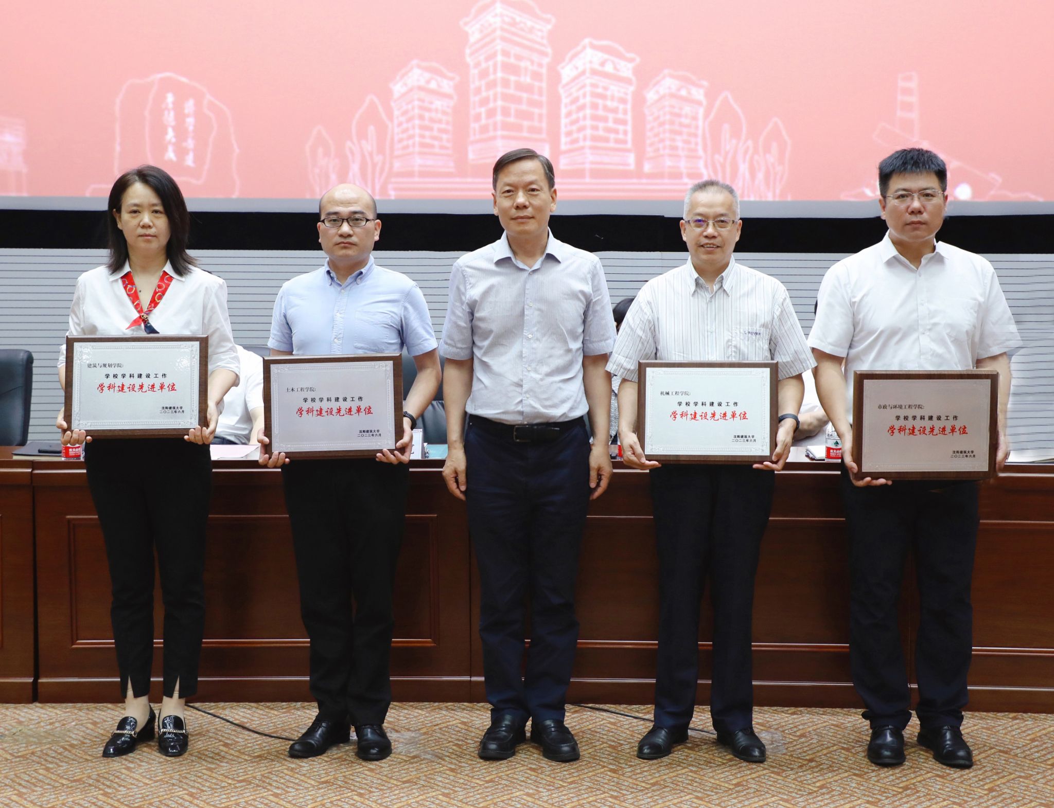 会上,冯国会宣读了学科建设工作表奖名单,学校领导为获奖单位和个人进行了颁奖。建筑与规划学院、土木工程学院、机械工程学院的相关学科负责人就学科建设经验进行了交流。