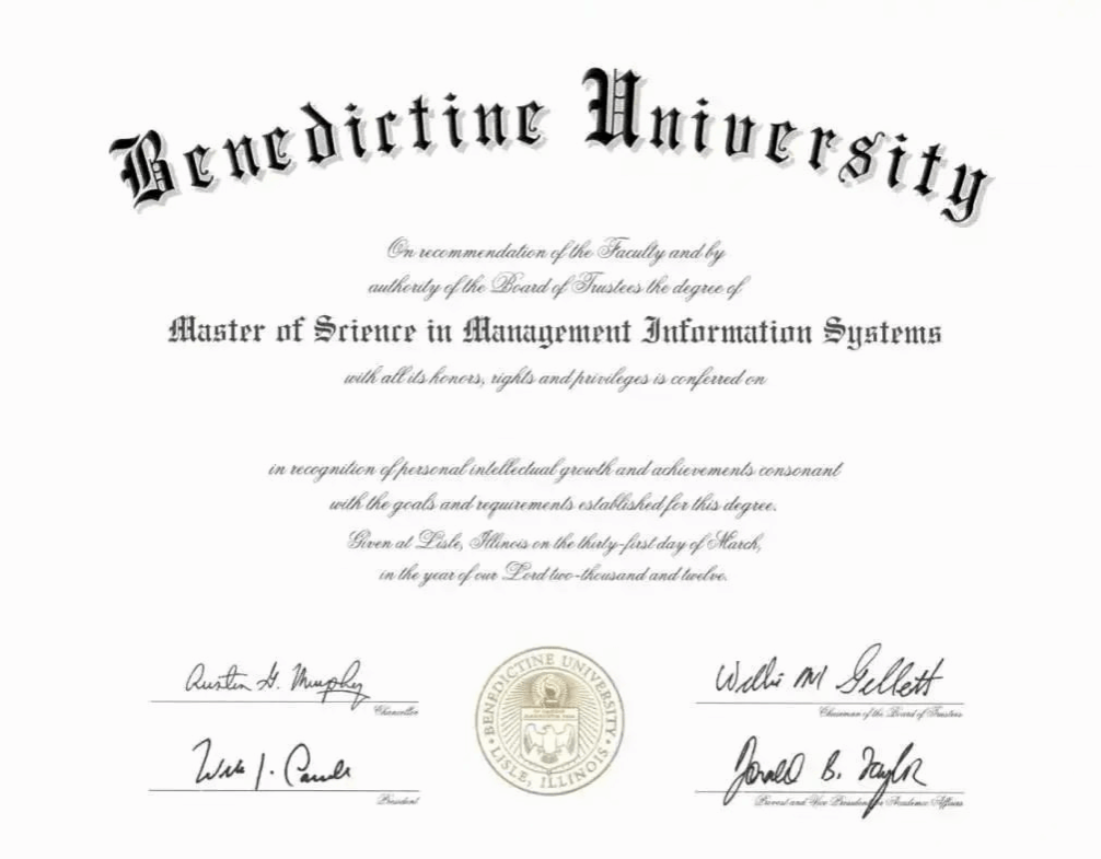 学生学完14门课程获得42学分,各门课程平均成绩必须达到毕业要求,方有资格申请毕业。达到毕业要求的学生可获美国班尼迪克大学理学硕士学位证书及中国教育部学历学位双认证。